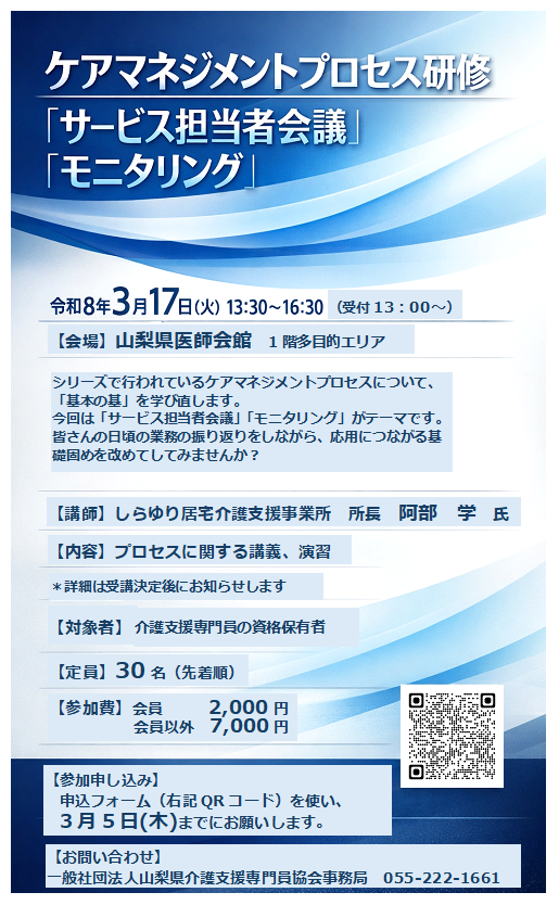 生涯学習体系委員会「ケアマネジメントプロセス研修~基本の基~」の開催について(ご案内)
